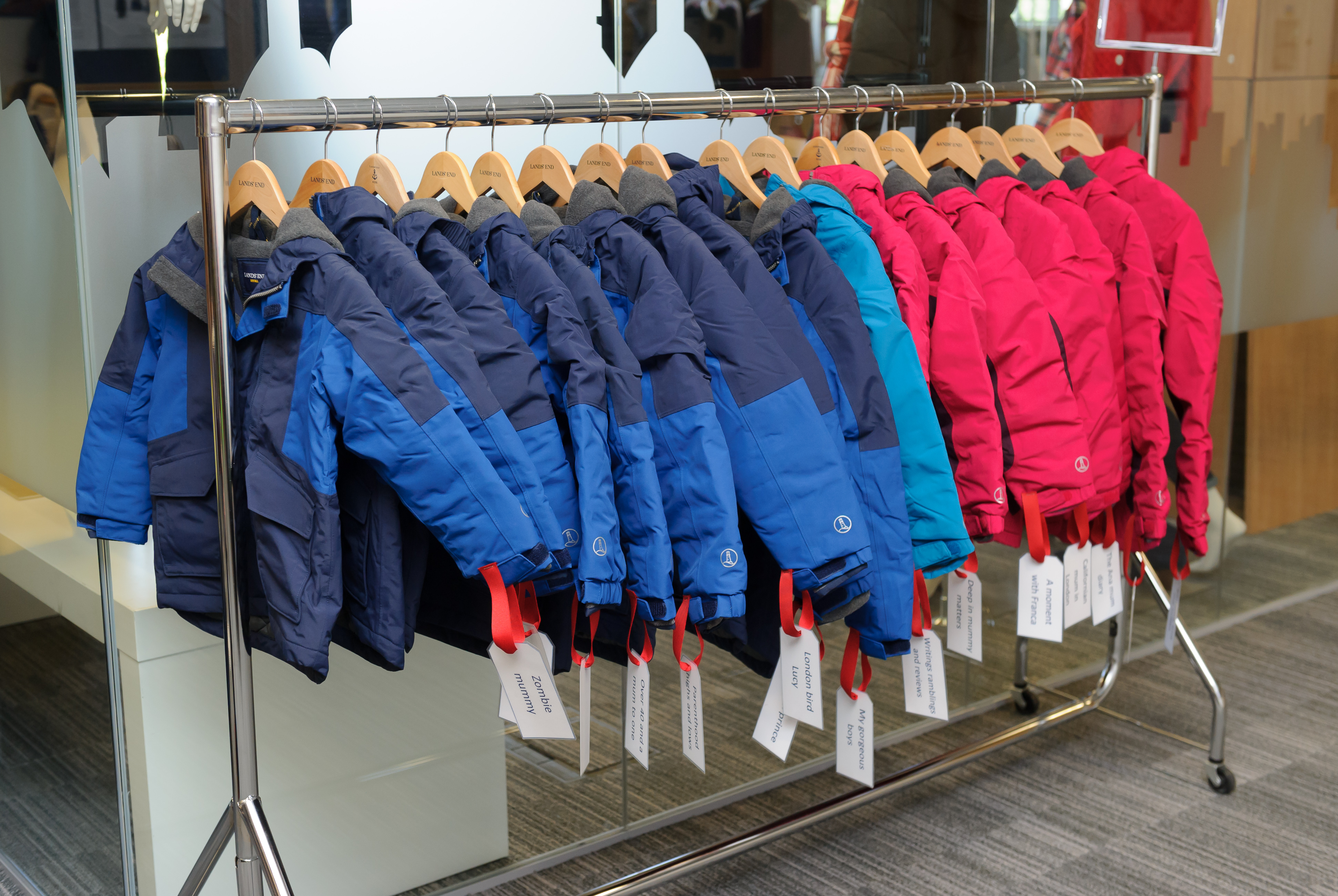 After a quick chat with Elfa (Californianmuminlondon) and Mary (Over40andmumtoone) while gobbling the yummy lunch (as we arrived slightly late), I had a quick chat with other bloggers and Lands’ End team. And while the lovely people at Lands’ End happily accepted to do the hardest job ever – Baby Sitting and engaging toddlers and little ladies, Mums and Dads were comfortably seated for a quick brief about Lands’ End history and What is in store to get us ready for (any) the upcoming weather!